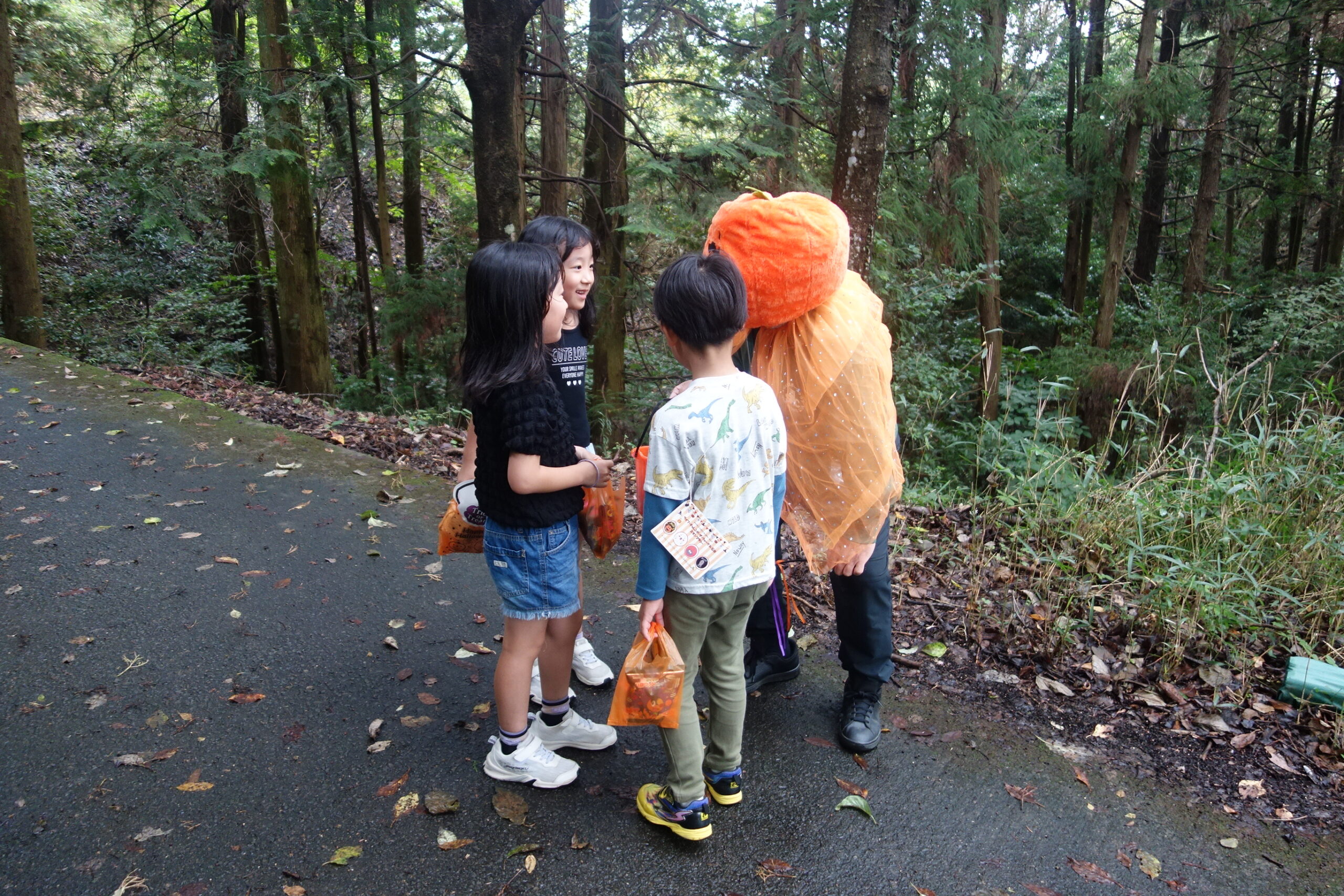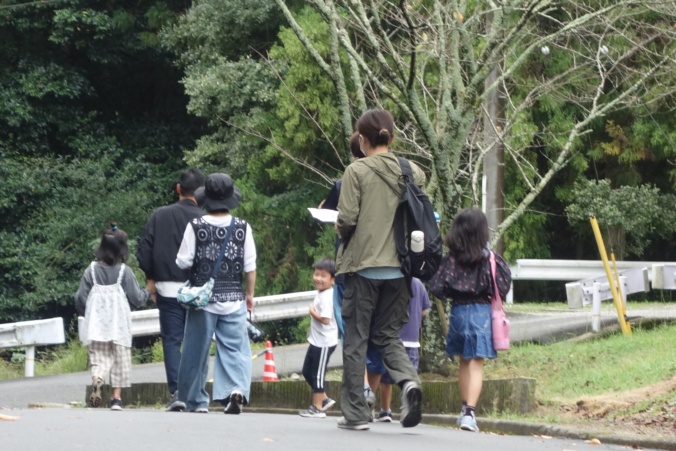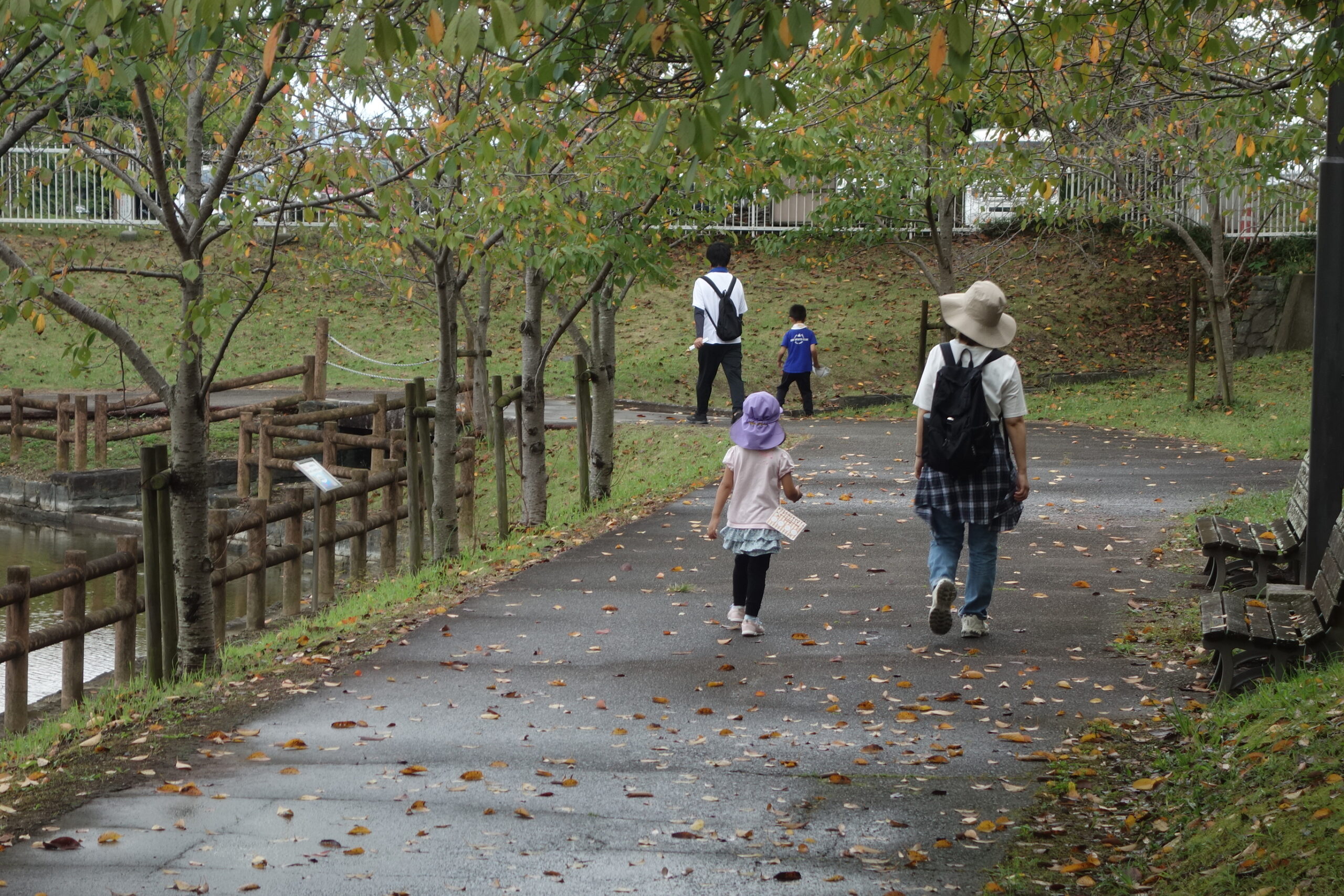 山道には落ち葉や様々な形のドングリがあり、子どもたちは家族やお友達と一緒に発見を楽しみながらウォーキングを行っていました。