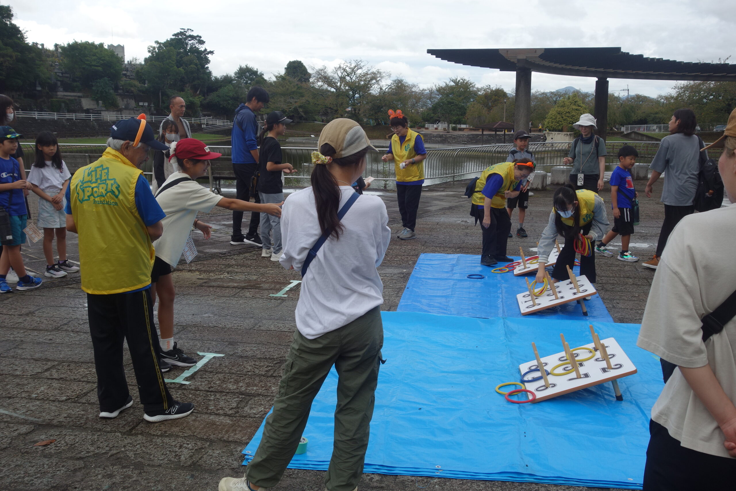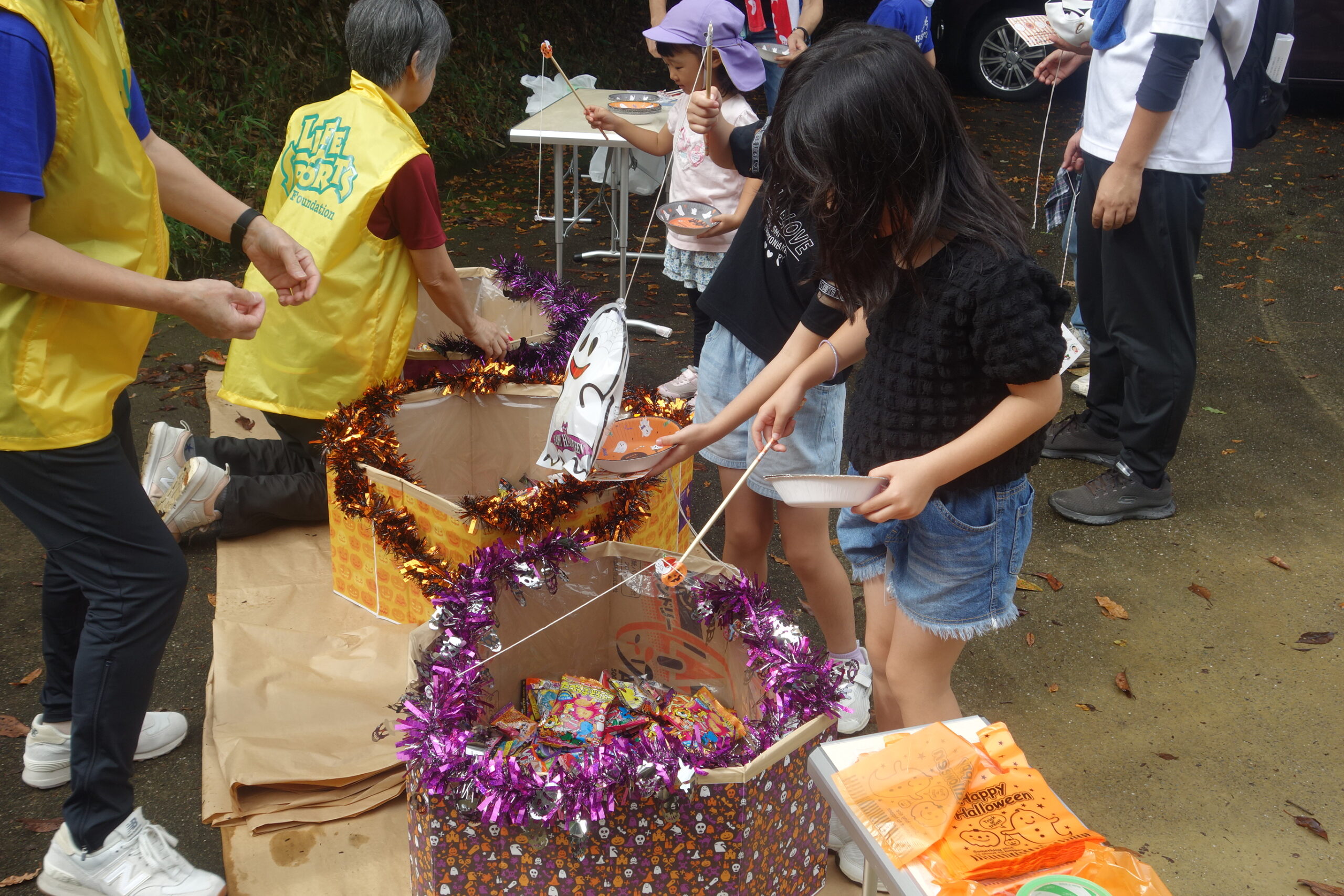 コース途中には、輪投げやパターゴルフ、タンバリンタッチ、山頂でのお菓子釣りなどのチェックポイントが設けられ、スタッフや保護者の方が温かく声を掛ける中、子どもたちは笑顔で楽しそうに取り組んでいました。