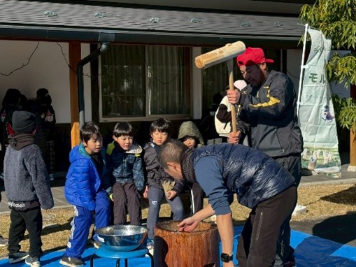 ゴール後には餅つき大会が行われ、お餅をついたり、みんなと一緒に食べたりと、お正月らしいイベントとなっていました。